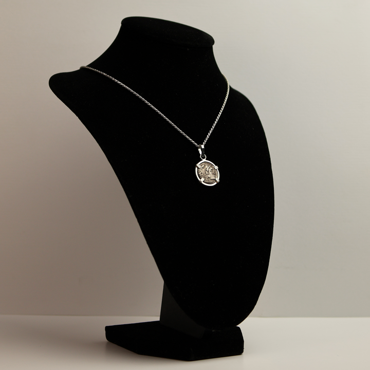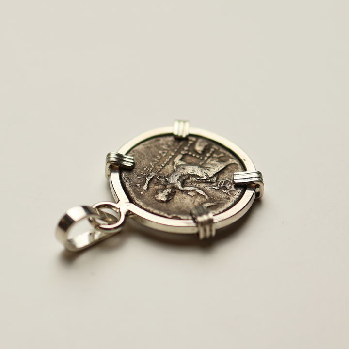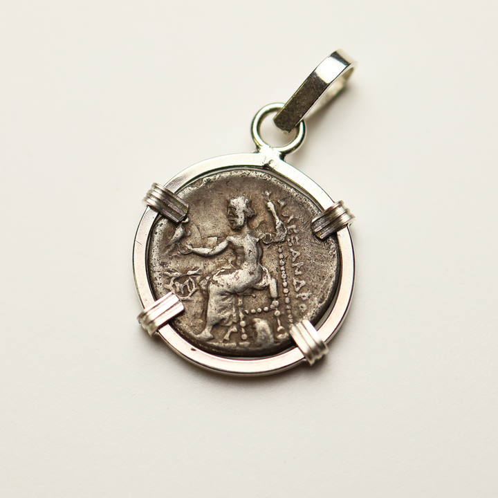 This item is an authentic Alexander the Great coin, placed in a handmade bezel of Sterling Silver. There is only 1 of this item; you will receive the exact pendant shown in the photos.