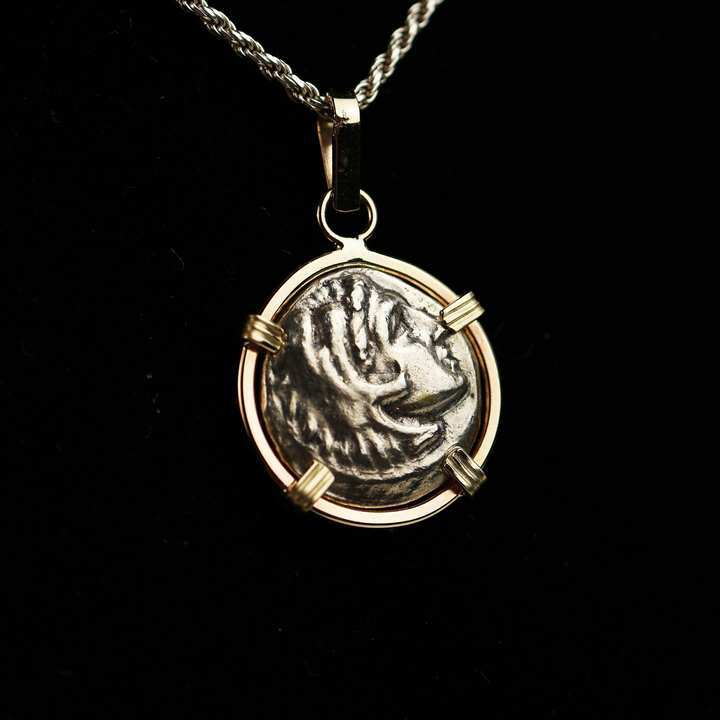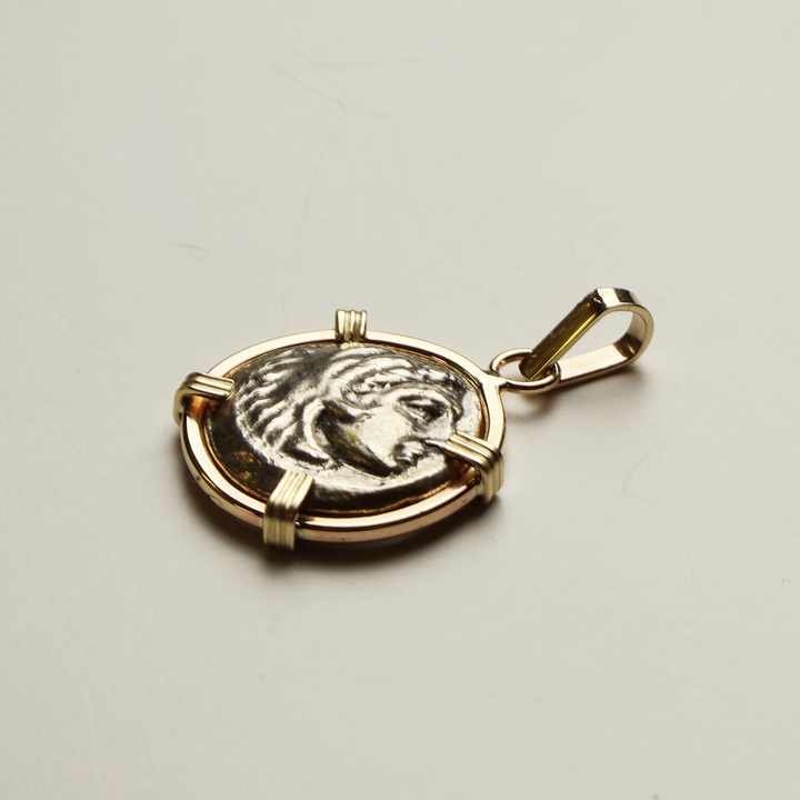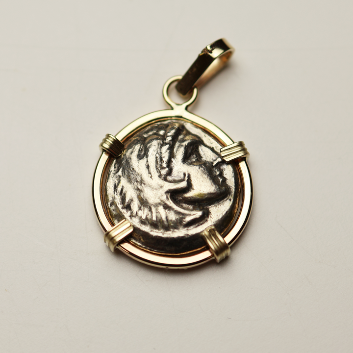 This item is an authentic Alexander the Great coin, placed in a handmade bezel of 14k gold. There is only 1 of this item; you will receive the exact pendant shown in the photos.