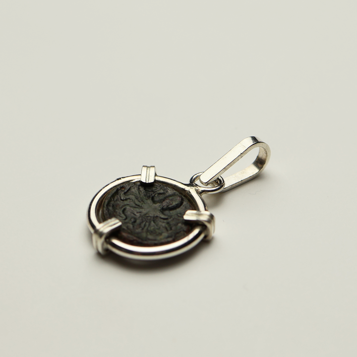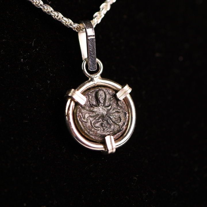 This item is an authentic Greek Bronze coin depicting an octopus, placed in a handmade bezel of sterling silver. There is only 1 of this item; you will receive the exact pendant shown in the photos.