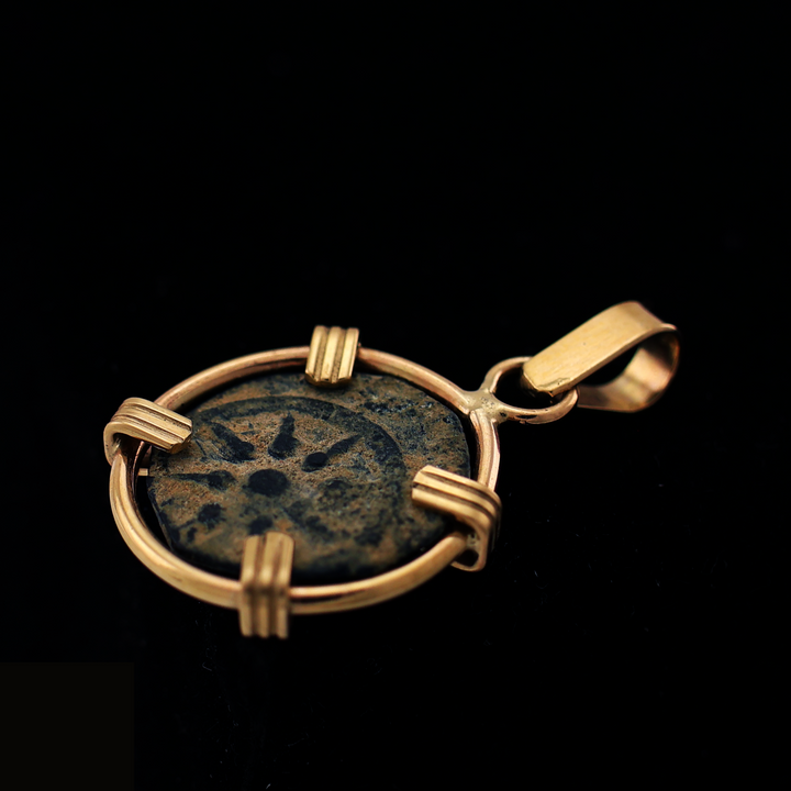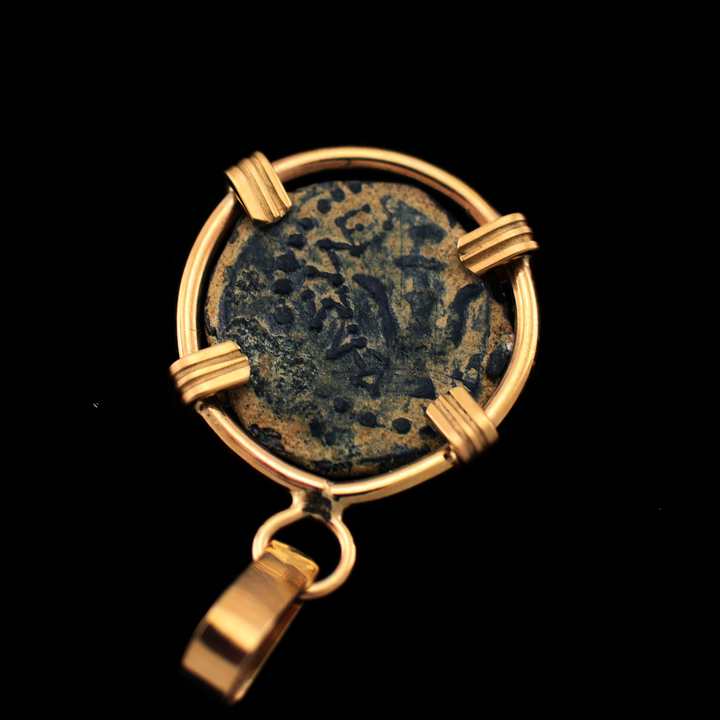 This item is an authentic coin of Ancient Judea, minted in the time of Christ, placed in a handmade bezel of 14 karat gold. There is only 1 of this item; you will receive the exact pendant shown in the photos.