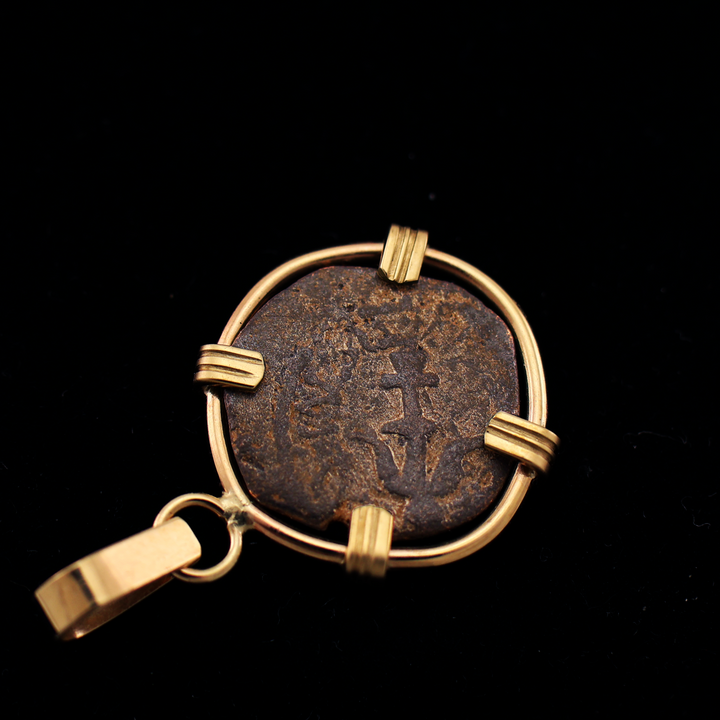 This item is an authentic coin of Ancient Judea, minted in the time of Christ, placed in a handmade bezel of 14 karat gold. There is only 1 of this item; you will receive the exact pendant shown in the photos.