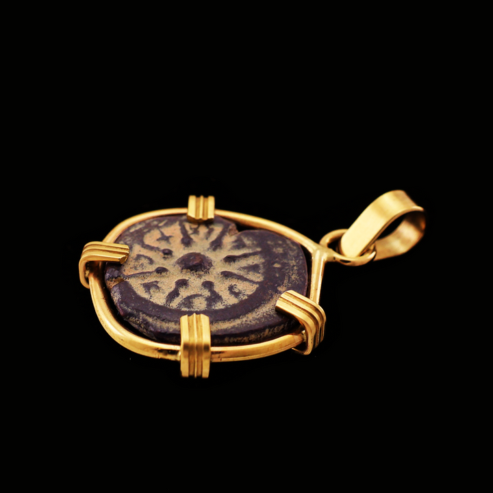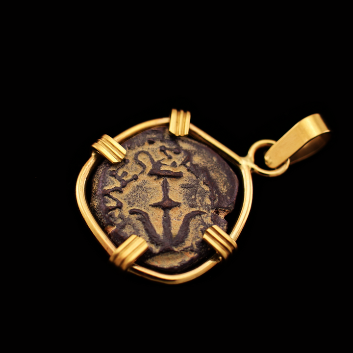 This item is an authentic coin of Ancient Judea, minted in the time of Christ, placed in a handmade bezel of 14 karat gold. There is only 1 of this item; you will receive the exact pendant shown in the photos.