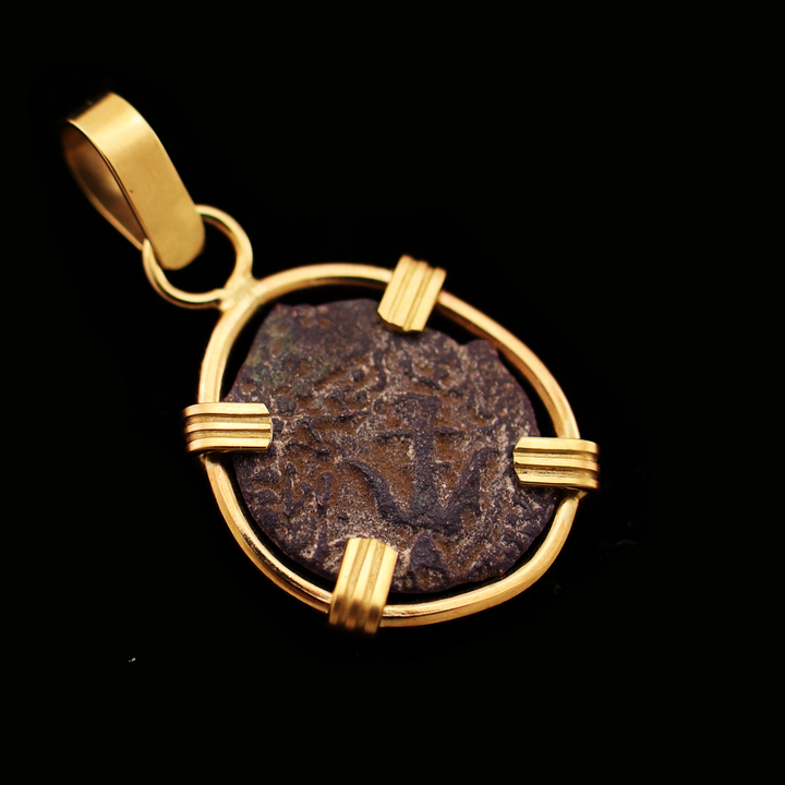 This item is an authentic coin of Ancient Judea, minted in the time of Christ, placed in a handmade bezel of 14 karat gold. There is only 1 of this item; you will receive the exact pendant shown in the photos.
