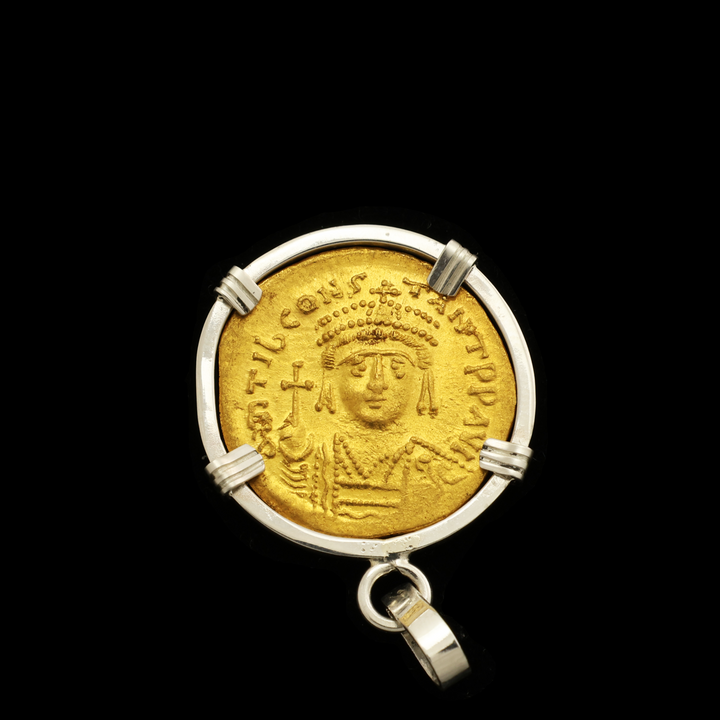 Gold solidi of Tiberius II Constantine come from the late sixth century, a time when the Byzantine Empire still commanded vast wealth and influence from its capital at Constantinople. These coins were struck at the imperial mint there, which was the heart of Byzantine monetary production, though smaller issues were also produced in major provincial cities such as Thessalonica and Carthage to supply regional economies and armies. The solidus was the empire’s standard gold coin, prized for its consistent purity and weight, and it served as the foundation of Byzantine and later medieval commerce for centuries.