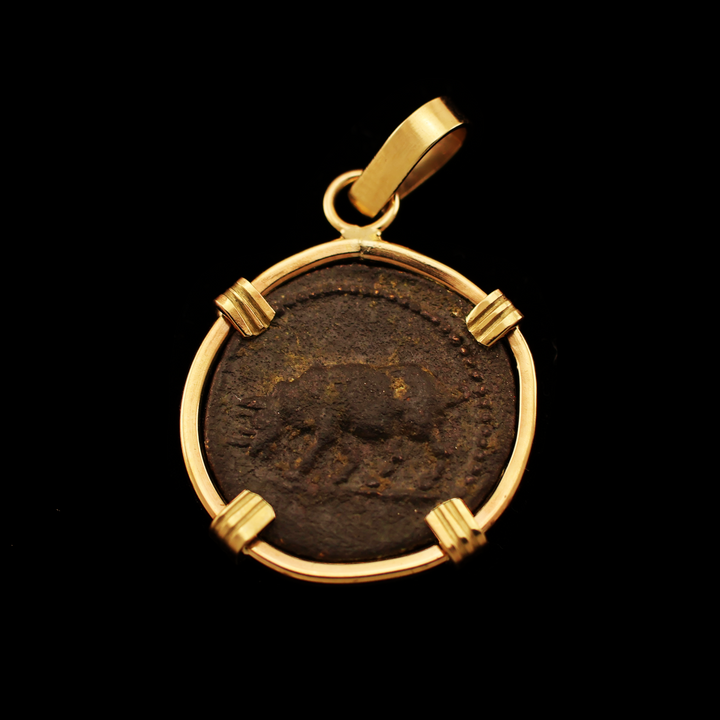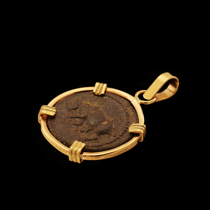 This item is an authentic Roman quadrans coin, placed in a handmade bezel of 14 karat gold. There is only 1 of this item; you will receive the exact pendant shown in the photos.