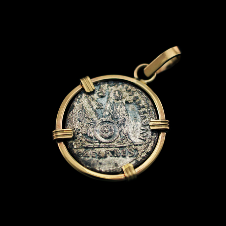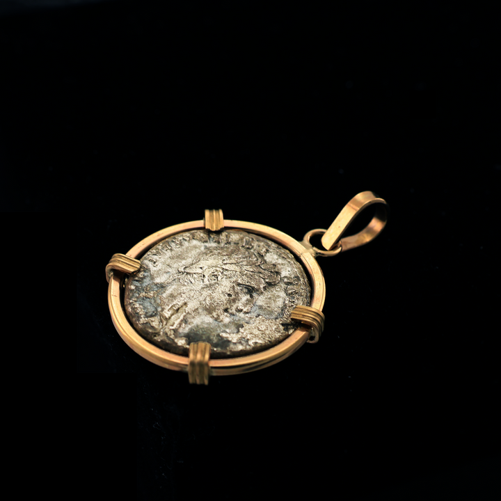 This item is an authentic Roman silver denarius coin, placed in a handmade bezel of 14 karat gold. There is only 1 of this item; you will receive the exact pendant shown in the photos.