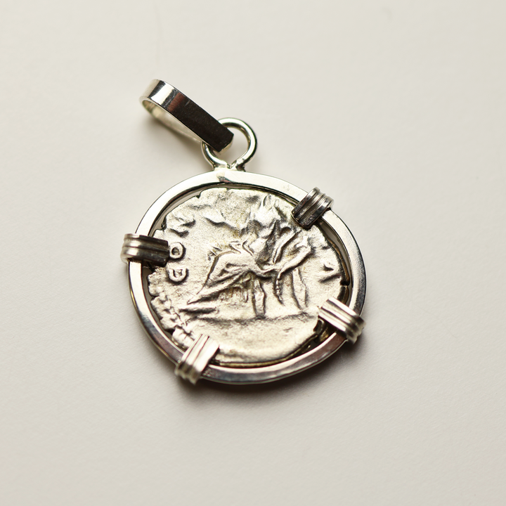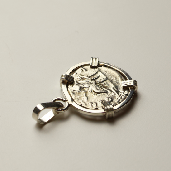 This item is an authentic Roman silver denarius coin, placed in a handmade bezel of 14k Gold. There is only 1 of this item; you will receive the exact pendant shown in the photos.