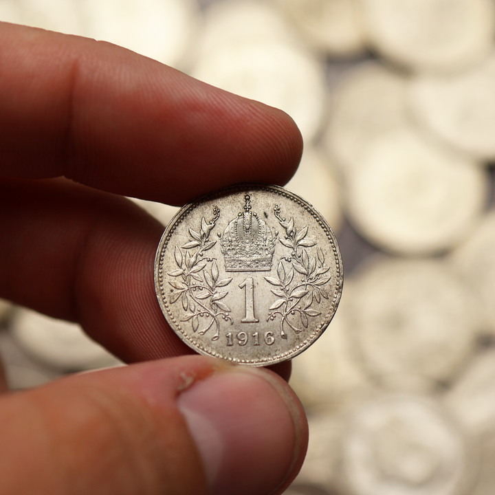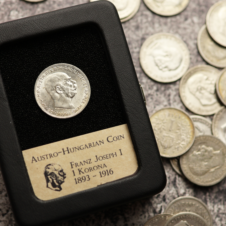 Owning an Austro-Hungarian 1 Korona coin from the years before and during World War I is also relatively common, as they were minted in large numbers and struck in silver. Introduced in 1892 as part of the empire’s currency reform, the 1 Corona became a standard denomination within the dual monarchy’s monetary system. These coins were widely circulated throughout the empire’s many territories, and their silver content gave them both intrinsic value and durability. Their broad use in daily commerce meant they were produced in significant quantities through the late 19th and early 20th centuries. Before the outbreak of World War I, the 1 Corona coin represented the empire’s economic modernization and stability. During the war years, however, as Austria-Hungary’s economy came under increasing strain, silver coins like the 1 Korona were often pulled from circulation, hoarded, or preserved as mementos. Many survived as keepsakes passed down through families, offering a tangible link to the final decades of the Habsburg monarchy.