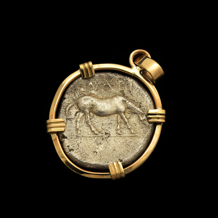 This item is an authentic greek silver drachm coin, placed in a handmade bezel of 14 karat gold. There is only 1 of this item; you will receive the exact pendant shown in the photos.