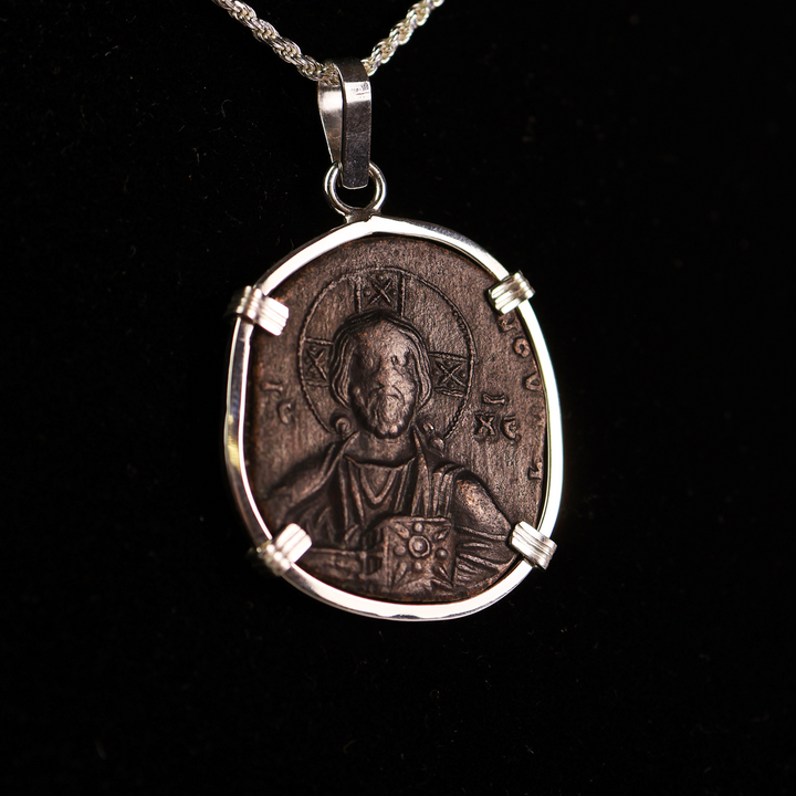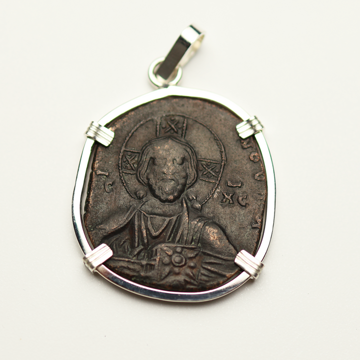 This item is an authentic Byzantine empire coin depicting Christ, placed in a handmade bezel of sterling silver. There is only 1 of this item; you will receive the exact pendant shown in the photos.