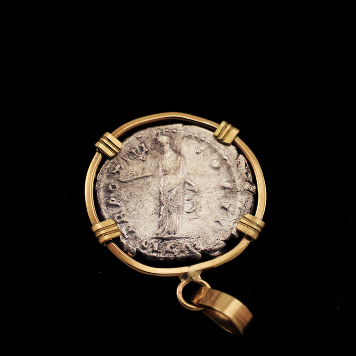 This item is an authentic Roman silver Denarius depicting Marcus Aurelius, placed in a handmade bezel of 14 karat gold. There is only 1 of this item; you will receive the exact pendant shown in the photos.