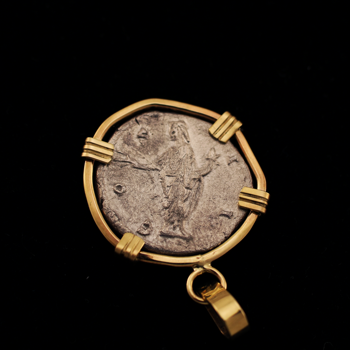 This item is an authentic Roman silver Denarius depicting Marcus Aurelius, placed in a handmade bezel of 14 karat gold. There is only 1 of this item; you will receive the exact pendant shown in the photos.