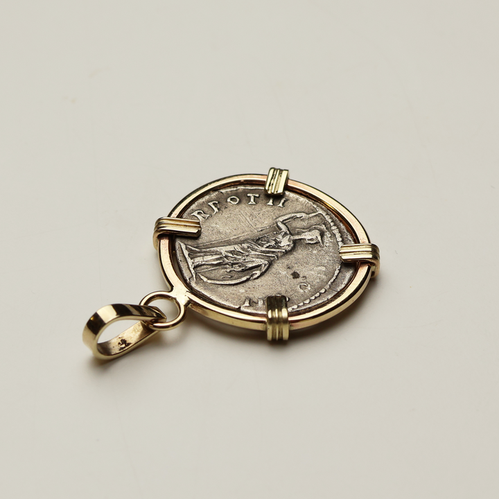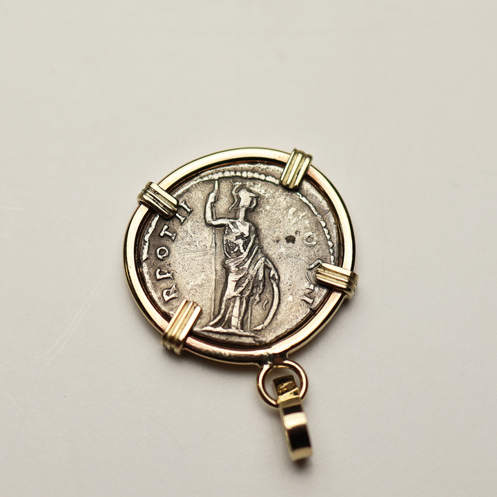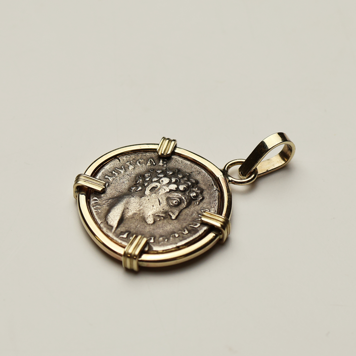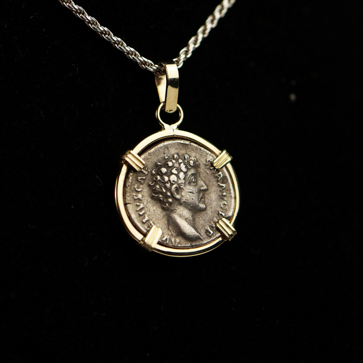 This item is an authentic Roman silver Denarius depicting Marcus Aurelius, placed in a handmade bezel of 14 karat gold. There is only 1 of this item; you will receive the exact pendant shown in the photos.