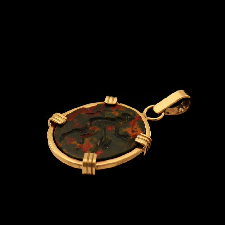 This item is an authentic Roman intaglio, placed in a handmade bezel of 14 karat gold. There is only 1 of this item; you will receive the exact pendant shown in the photos.