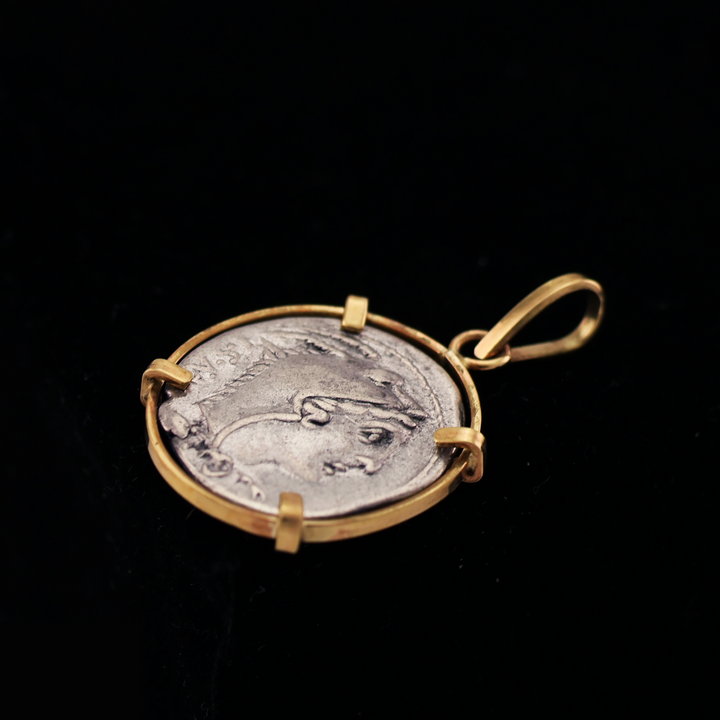 This item is an authentic Roman silver denarius coin, placed in a handmade bezel of 14 karat gold. There is only 1 of this item; you will receive the exact pendant shown in the photos.