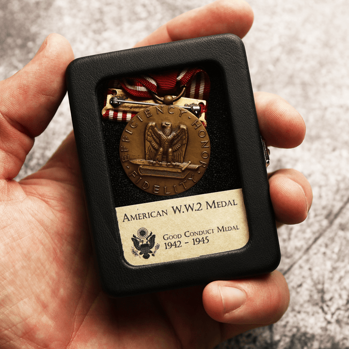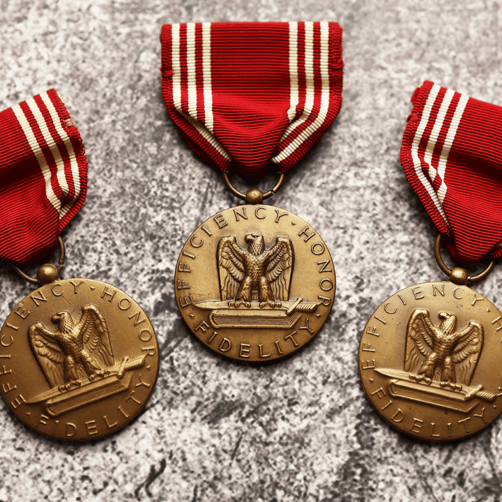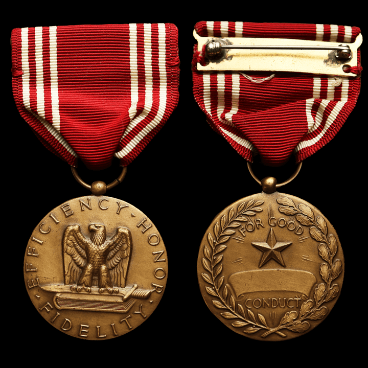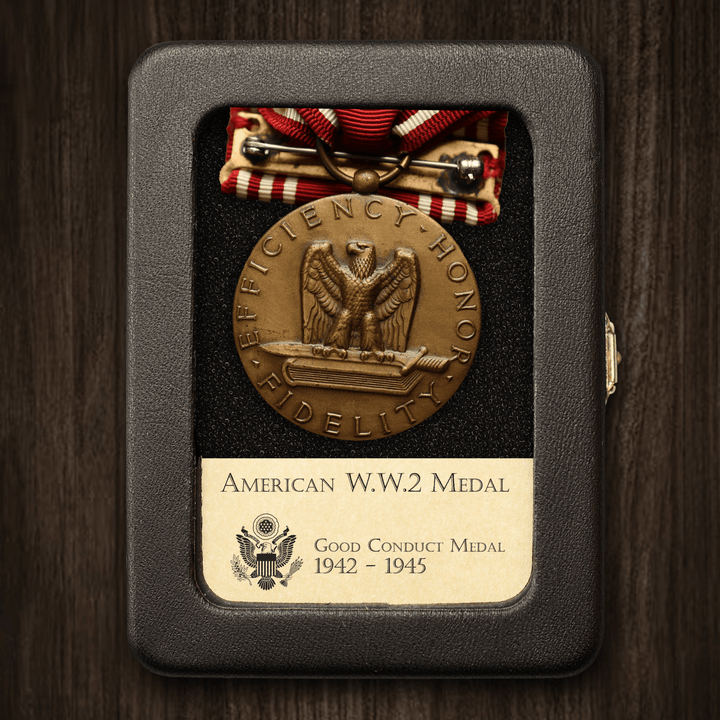 The U.S. Army Good Conduct Medal was created by Executive Order in June 1941, just months before America entered World War II, as a way to formally recognize the discipline and reliability of enlisted soldiers. Unlike combat decorations awarded for bravery in battle, the Good Conduct Medal honored those who demonstrated faithful service, efficiency, and clean disciplinary records over a set period of time—usually three consecutive years of honorable service, though during wartime the requirement could be reduced to one year. The medal itself features an eagle perched on a sword and a book, surrounded by the words “Efficiency, Honor, Fidelity,” which sum up the qualities the award was meant to represent.